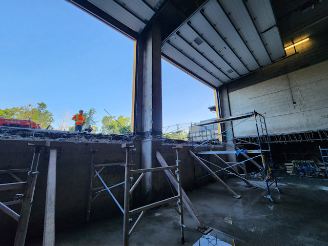 the building main truck docks and garage ramp