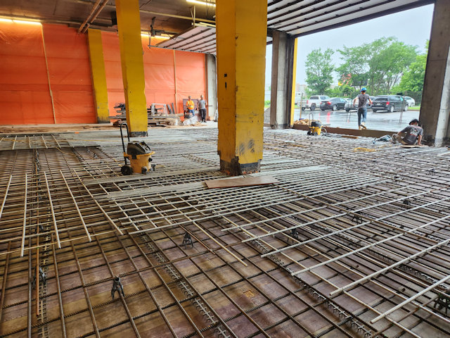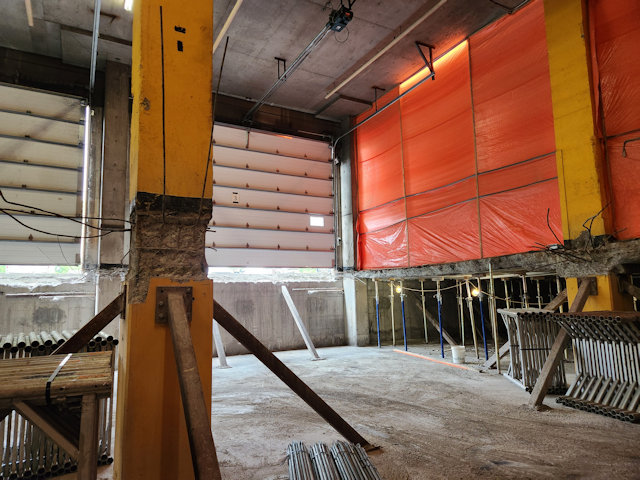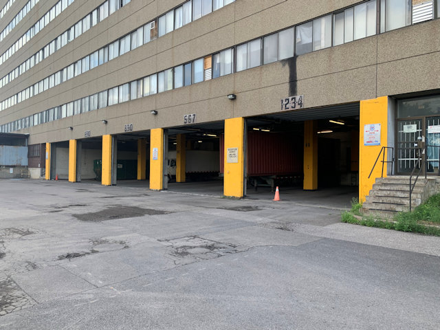 the building main truck docks and garage ramp
